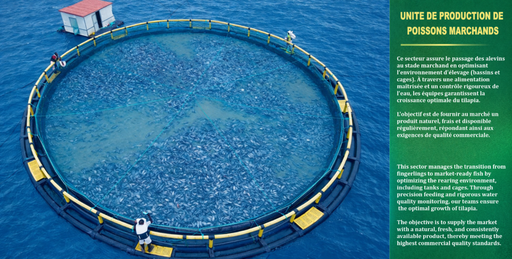 LOFTY FARM est une entreprise aquacole intégrée spécialisée dans la production d’alevins, l’élevage de poissons marchands (Tilapia et Clarias), la fabrication d’aliments pour poissons et la formation professionnelle. Nous maîtrisons l’ensemble de la chaîne de valeur, offrant ainsi un modèle diversifié aux perspectives de croissance solides et durables.